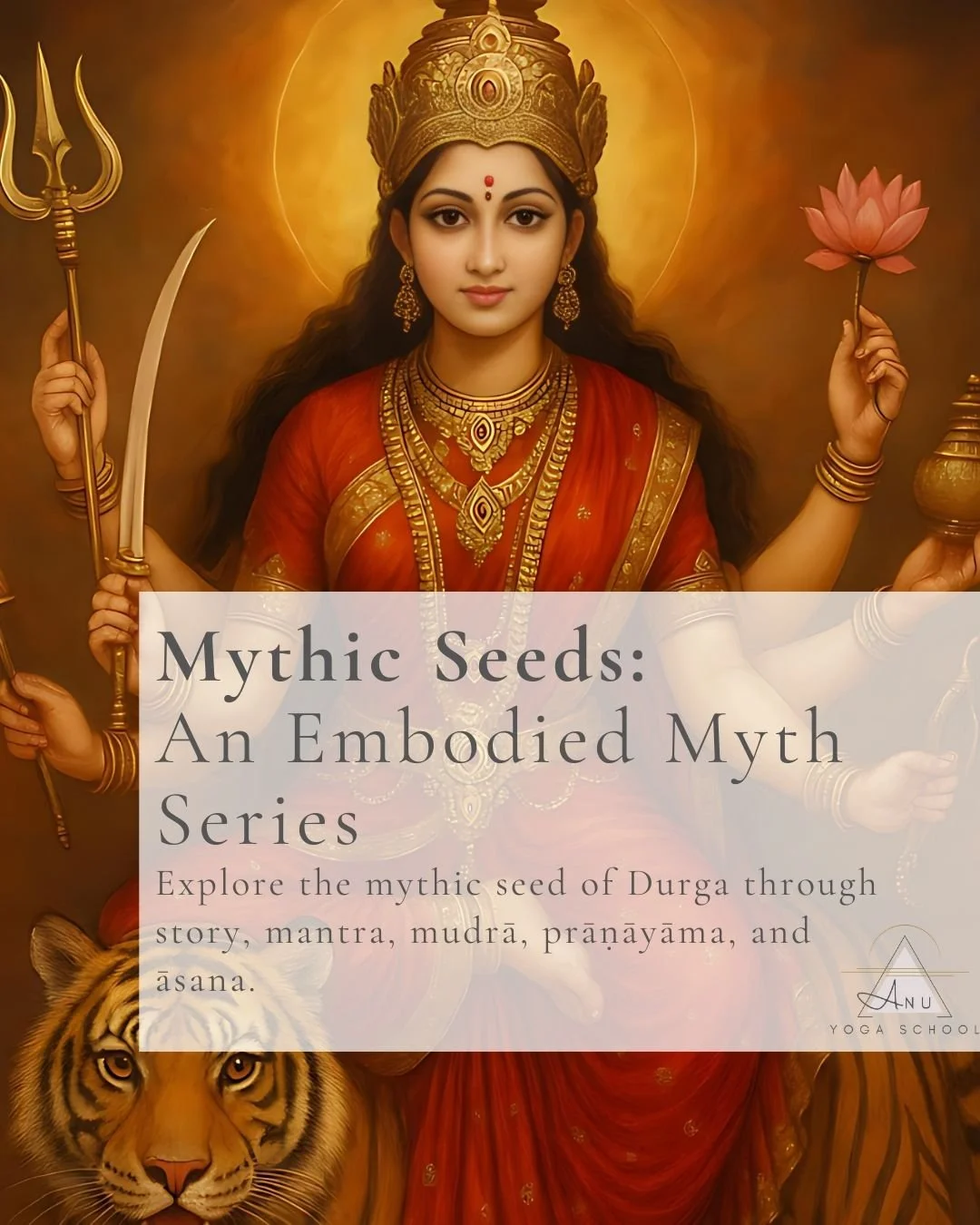 Mythic Seeds Series continues with Durgā. In this live, in-person class, we’ll plant the mythic consciousness of Durgā—exploring what she embodies-- Fierce Compassion, Discernment, & Inner Power-- through storytelling, mantra, mudrā, prāṇāyāma, and āsana. The entire experience is designed as a mythic immersion: playful, fun, and deeply potent. This is a truly unique offering—come experience how myth comes alive within.